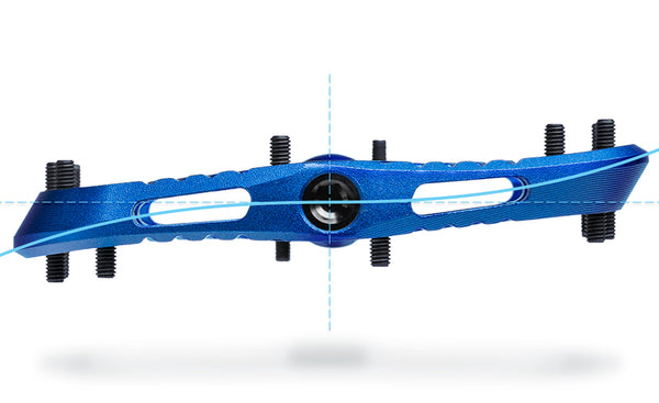 Most flat pedal profiles are either convex or concave. Wave is a patented hybrid convex/concave shape that promotes an aggressive heels-dropped riding position and gives you a more natural pedal stroke when seated. With Wave, your foot is being held by the shape of the pedal - not just the pins.